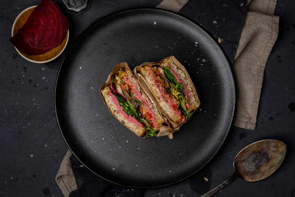 Det velsmakende brødet er laget på norsk, økologisk mel fra Sigdal mølle, som også er med på å binde karbon gjennom regenerativt landbruk. Sandwichene våre lages selvsagt fra bunnen av med ferske gode, og næringsrike, råvarer og består av minst 50 prosent grønnsaker. Godt for deg og godt for miljøet.