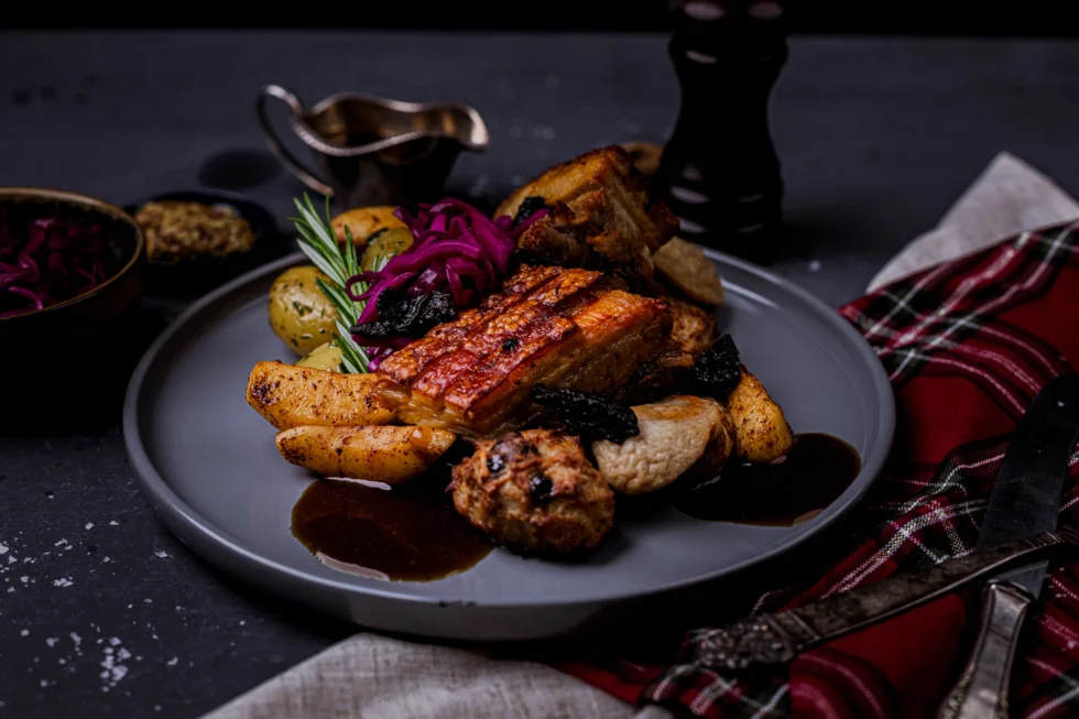 Saftig og mør ribbe med hjemmelagde medisterkaker og