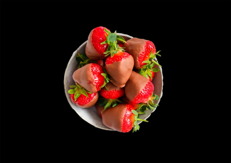 Norske jordbær (Norsk i sesong) dyppet i sjokolade 2 stk per person.